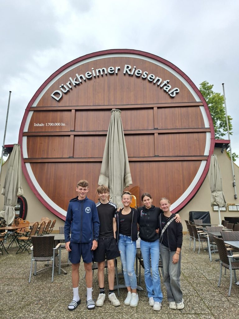 Die Nacht verbrachten wir auf Burg Altleiningen, wo ein fröhlicher Spieleabend die Lachmuskeln forderte. Am nächsten Tag standen das berühmte Dürkheimer Riesenfass, Flammkuchen in Freinsheim und eine „Winzerolympiade“ auf dem Programm.